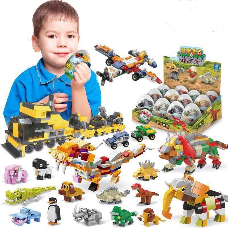 12 in 1 Dinosaur Animal Construction Vehicles Robots Building Blocks Gacha Eggs Toys Full Pack
