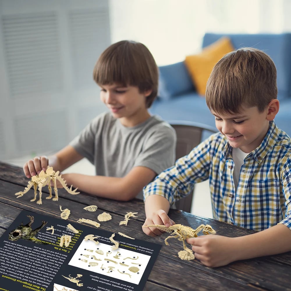 - And now your kids can enjoy your findings. They can start their fossil collection, assemble a 3D T-REX SKELETON or play with the dinosaurs they just dig up. It will be a great gift and party activity.