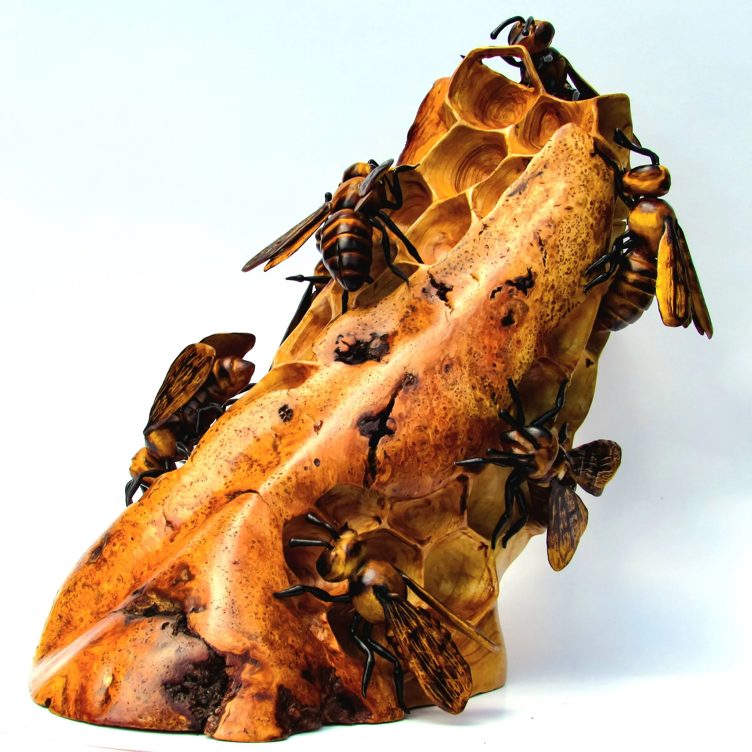 wooden honeycomb & Wood Bee Carving
